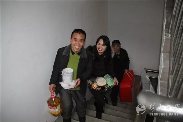 阿依河易地扶贫搬迁集中安置点有50套房,安置对象涉及绍庆街道、黄家镇、朗溪乡、桐楼乡等38户贫困户共144人。“今天有17户贫困户入住新家。为了祝贺大家,我们为大家免费准备了日常生活用品,大家到旁边领取。”主持人话音刚落,现场一阵欢呼,纷纷排队领取用品。