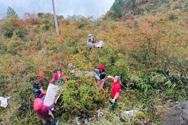 桐楼乡桐木村村民采摘火棘果。