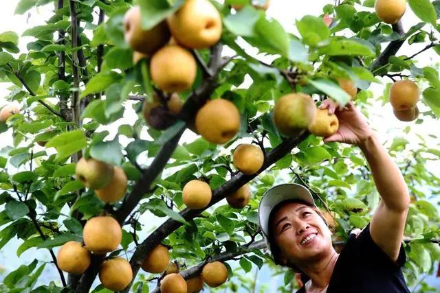 乔梓乡发展经果林产业,游客前来采摘梨子。