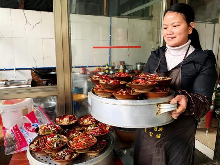 近日,记者在刘金彩的店里看到,来吃羊扣的顾客已经排起了队。刘金彩一边帮助给客人上菜,一边又忙着蒸羊扣。
