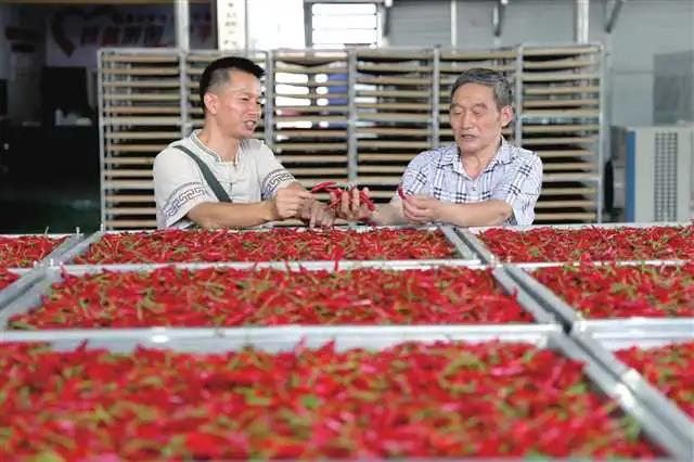 两江新区派驻彭水大垭乡大垭村第一书记陈睦彪查看辣椒收购烘烤情况