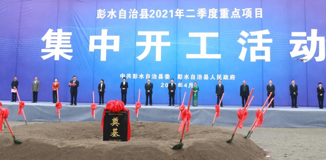 4月14日,彭水2021年二季度重点项目在彭水工业园区集中开工。本次集中开工的项目涉及基础设施、文化旅游、教育卫生、生态工业等24个重点项目。