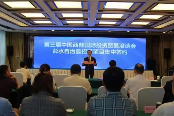 第三届中国西部国际投资贸易洽谈会(简称:西洽会)期间,彭水举行招商项目集中签约活动,成功签约招商项目13个,吸引总投资达139.25亿元。