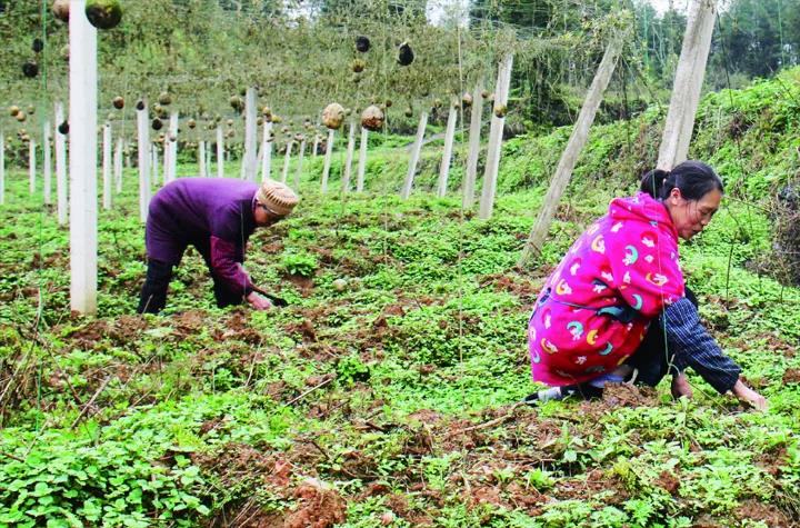 时下,正是中药材管护的时节,棣棠乡四坪村的瓜蒌基地里,村民正在田间地头抢抓有利时机为中药材除草,干得热火朝天。