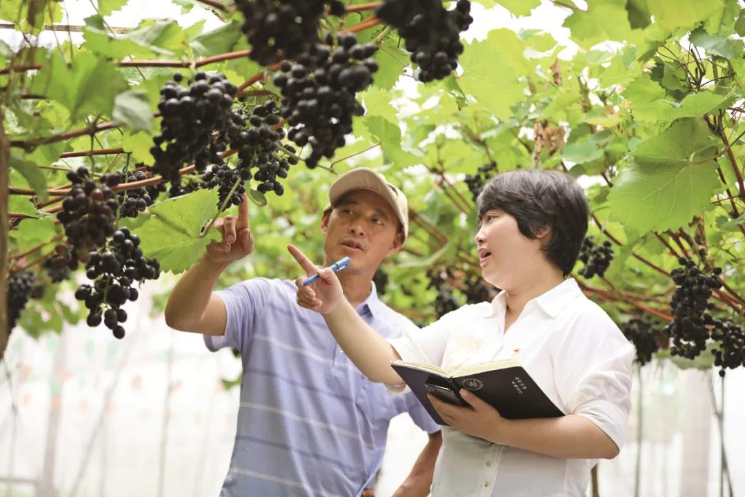 唐潜宁来到葡萄采摘园,和负责人细心交谈,详细了解产业规模、品种类型、销售模式、基础设施配套等情况。