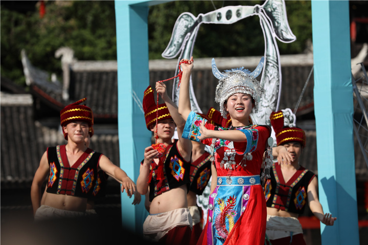 据了解,国庆假期期间,彭水依托“苗族文化”禀赋构建文旅消费新场景,打造“苗建筑”,在重点景区植入苗族文化墙、石碑、雕塑等30多项。传承“苗习俗”,将市级非物质文化遗产朗溪竹板桥造纸技艺、苗族蜡染、苗族刻纸等民间文化以动态展示方式让游客参与互动。开发100多道“苗乡菜谱”,设立“苗语角”20多处,用苗语、苗歌、苗礼与游客交流互动。推广“苗歌舞”,创作《娇阿依》等文艺精品100多件、《怀清台》等剧目15部,演出《苗祖·蚩尤》等大型实景剧1000多场次,木腊庄傩戏、高台舞狮、苗歌对唱等传统苗族歌舞戏剧在景区常态化演出。