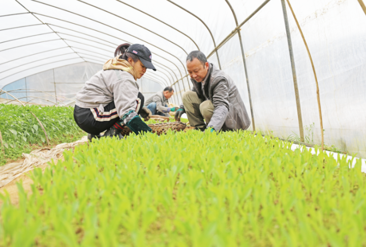 在罗建波的育苗大棚内,除了糯玉米苗,还有辣椒、茄子等蔬菜苗。绿油油的菜苗马上就能进行移栽。“趁着天气好,早点栽种,早点上市,就能有个好收成。”罗建波说。
