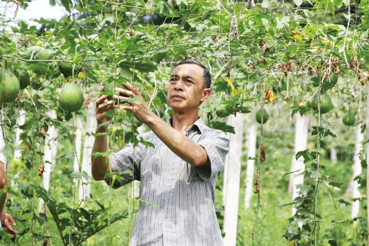 村民在管护瓜蒌。 摄影张 影