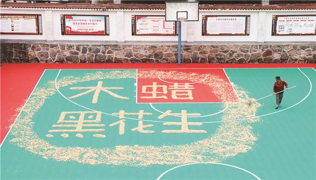 走进木蜡村便民服务中心旁,村民们正趁着好时节,晾晒着刚刚采收的黑花生。