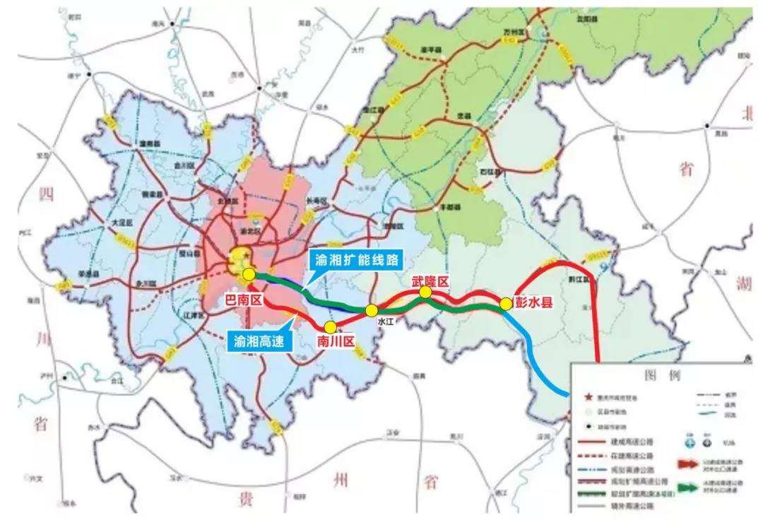 图 | 渝湘高速扩能,主城至彭水线路走向图